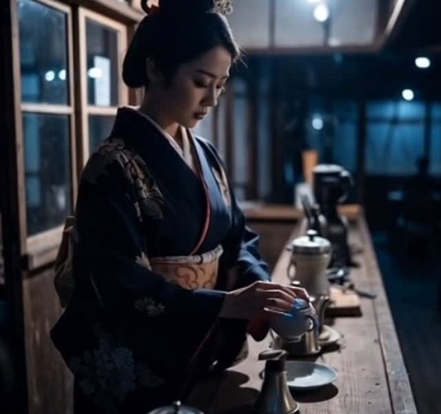 平成風にコーヒーを淹れている。
