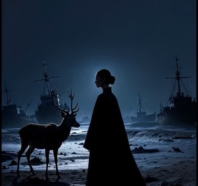 錆びた船体が、月明かりを浴びて銀色に浮かび上がる。