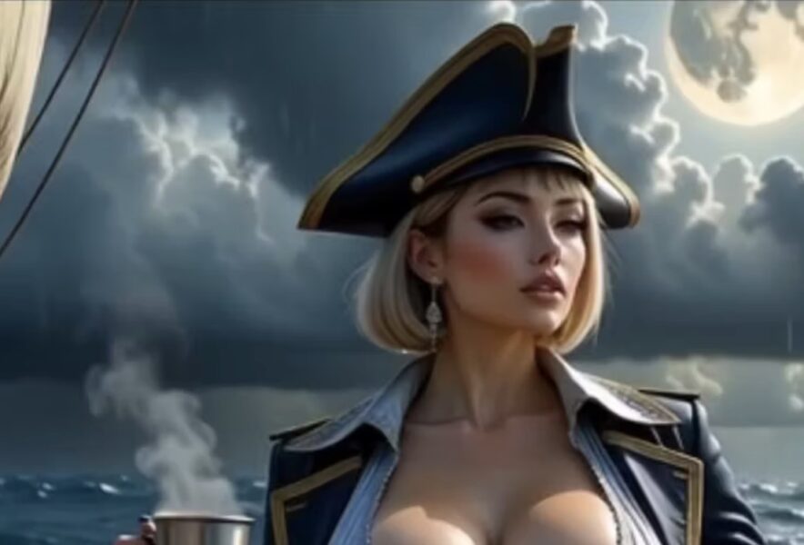 海賊船の甲板で漂う潮の匂いと重い空気。